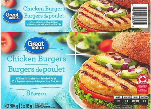 - Who: Belmont Meat Products Ltd. is recalling Great Value Chicken Burgers.